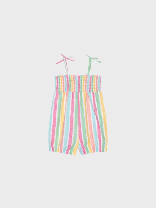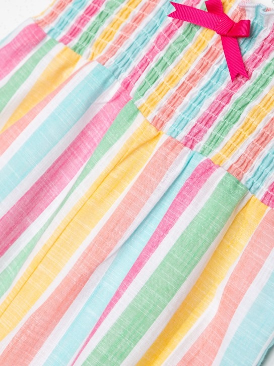 Combishort rayé rose, bleu, orange, jaune, vert et blanc.