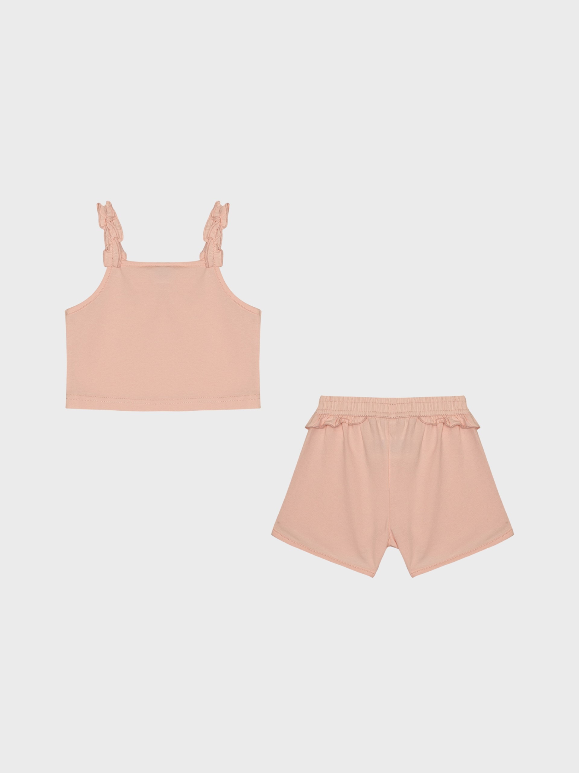 Partie volantée sur les bretelles du top et sur les côtés du short.