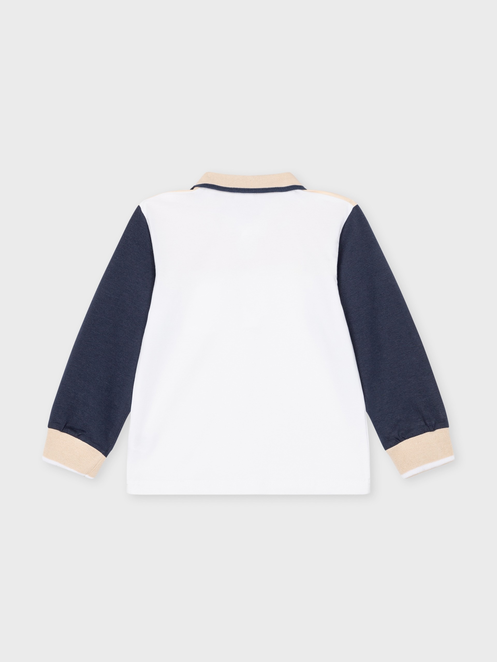 Polo blanc et beige, avec les manches marines.