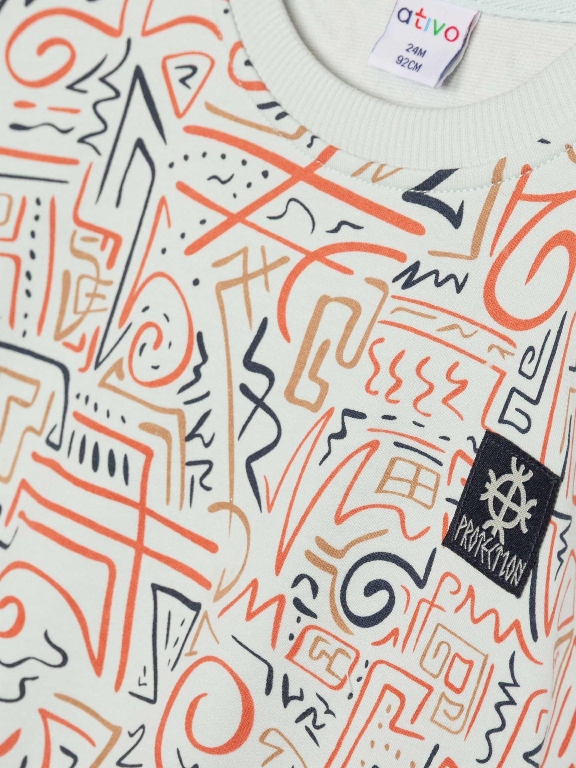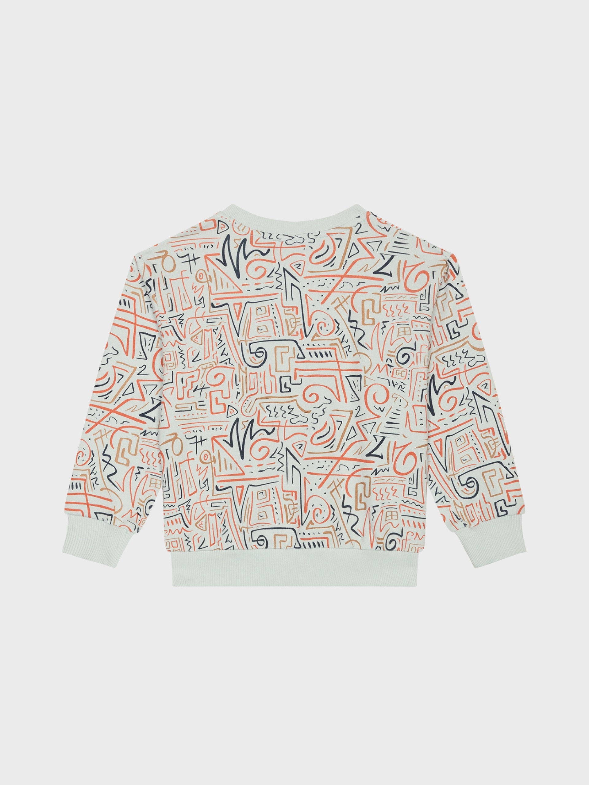 Motifs camel, rouille et marine sur le sweat.